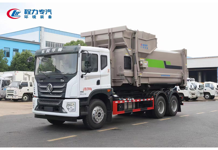 程力專汽東風(fēng)華神后雙橋勾臂垃圾車+移動(dòng)壓縮箱