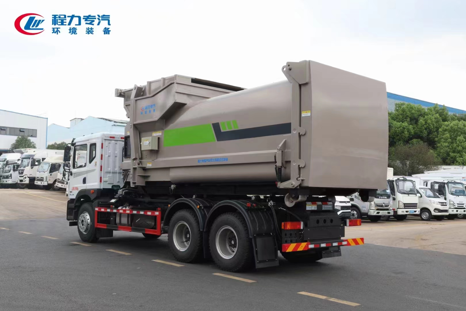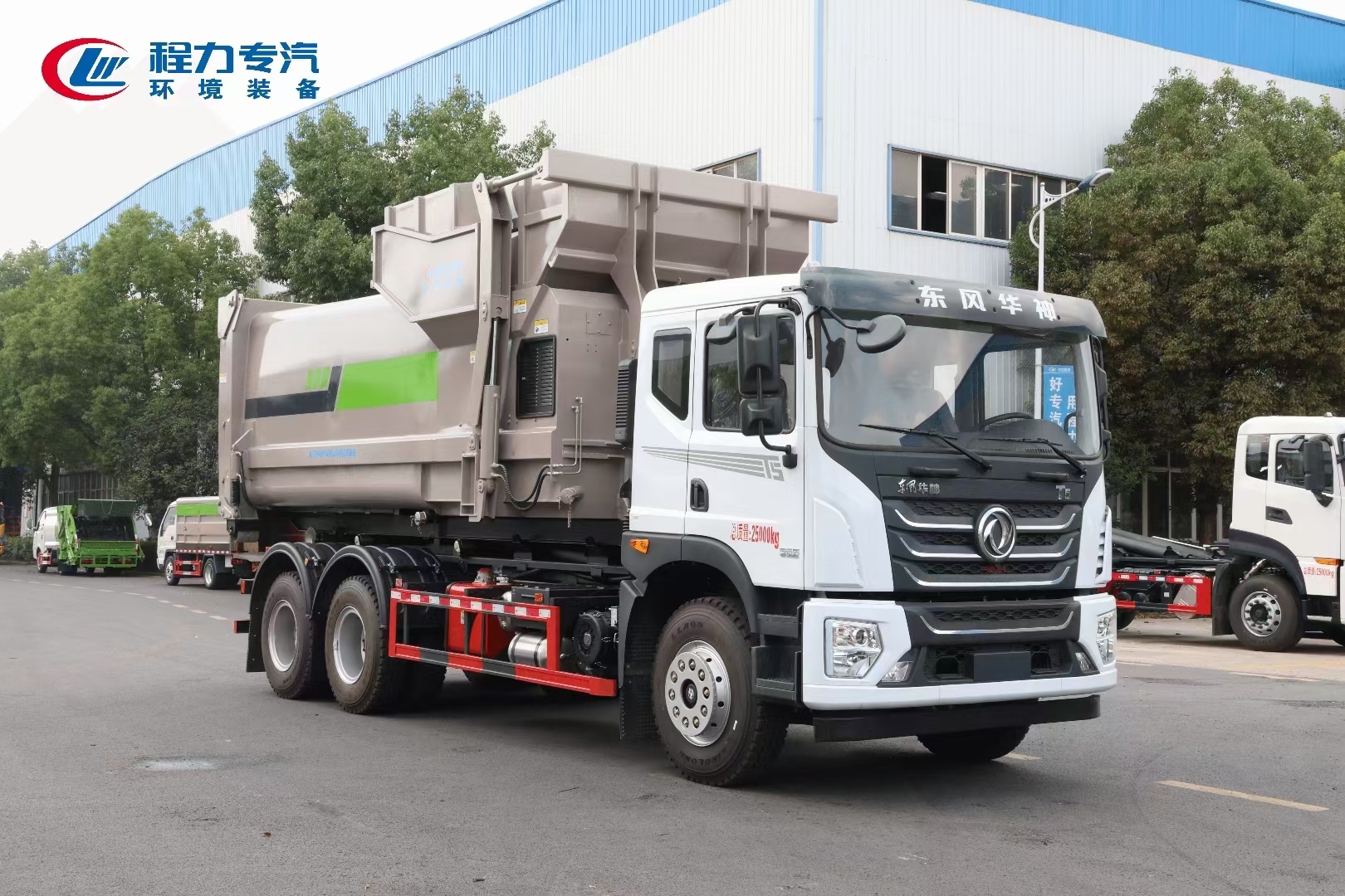 ??????湖北程力汽車:程力專汽東風(fēng)華神后雙橋勾臂垃圾車+移動(dòng)壓縮箱產(chǎn)品型號(hào)及參數(shù)配置,程力專汽東風(fēng)華神后雙橋勾臂垃圾車+移動(dòng)壓縮箱高清圖片,程力汽車系列程力專汽東風(fēng)華神后雙橋勾臂垃圾車+移動(dòng)壓縮箱最新報(bào)價(jià)請(qǐng)撥打客服熱線。車輛主要配置 產(chǎn)品名稱: 程力威牌CLW5253ZXXBHJ車廂可卸式垃圾車 外形尺寸: 828025503170(mm) 排放水平: 國(guó)六 貨箱尺寸: (mm) 總質(zhì)量: 25000(Kg) 接近/離去角: 15/19,15/20,15/21() 額定質(zhì)量: 14250,14185(Kg) 前懸后...