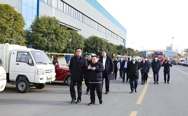 王志才總經(jīng)理一行領(lǐng)導及負責人,不畏凜冬寒冷,先后步行參觀程力(曾都)汽車工業(yè)園、程力南郊汽車裝備制造工業(yè)園兩大基地。來賓們看產(chǎn)品、下車間、問工藝,無一不細致入微,調(diào)研考察工作扎實認真高效。