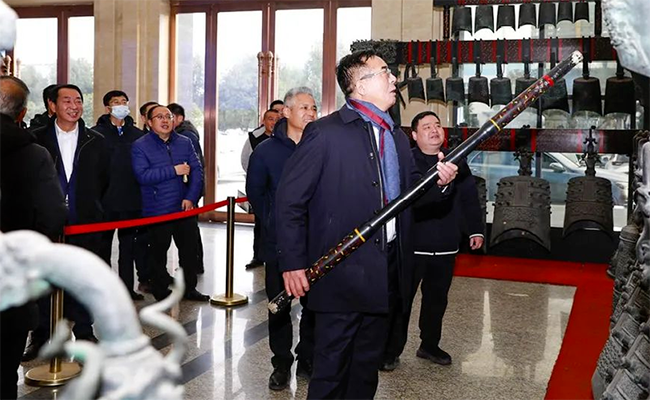 會議結(jié)束后,程阿羅總經(jīng)理在迎賓大廳向王志才一行嘉賓講述了隨州古老文明的編鐘文化,雙方嘉賓集體合影留念。